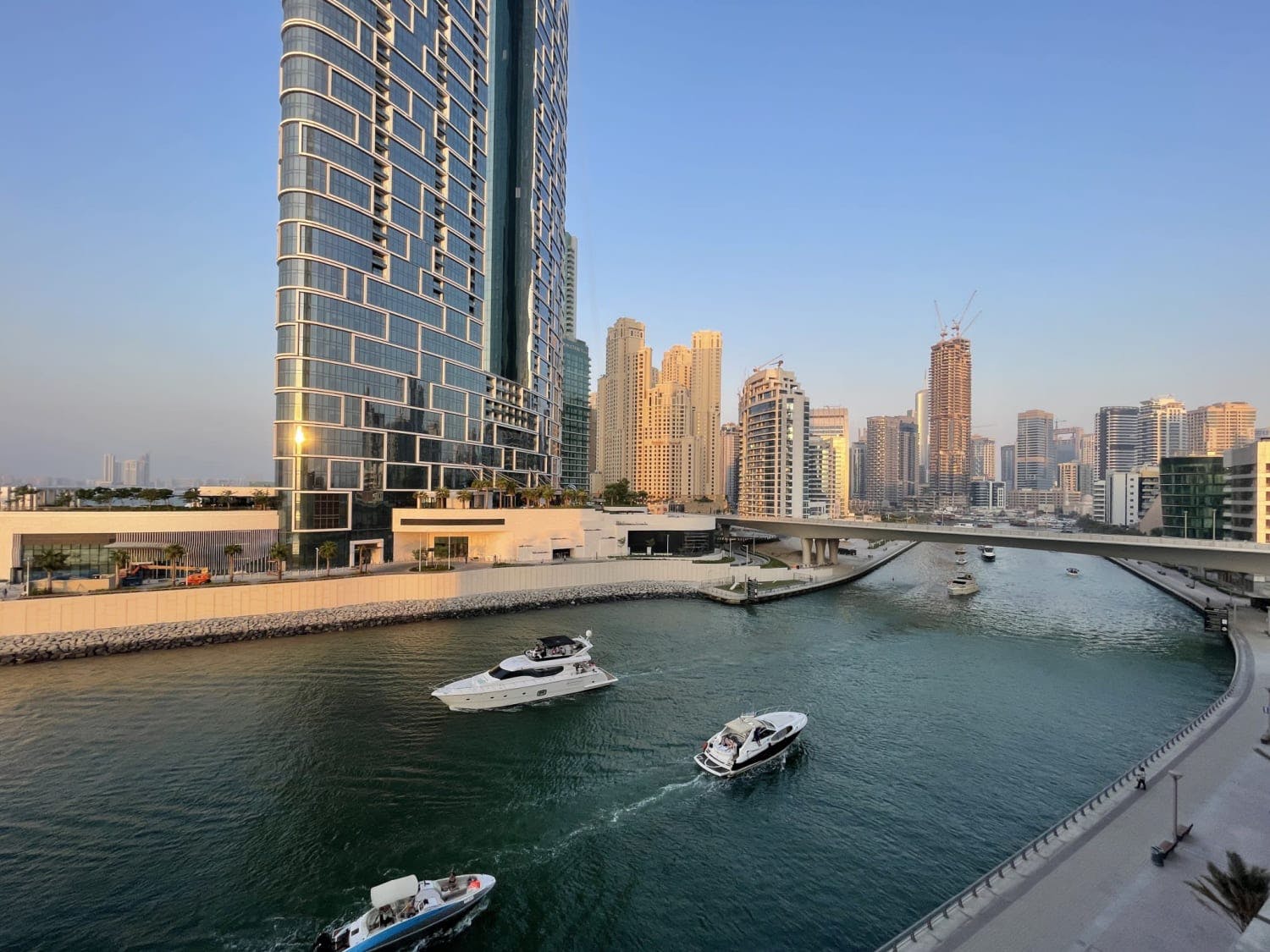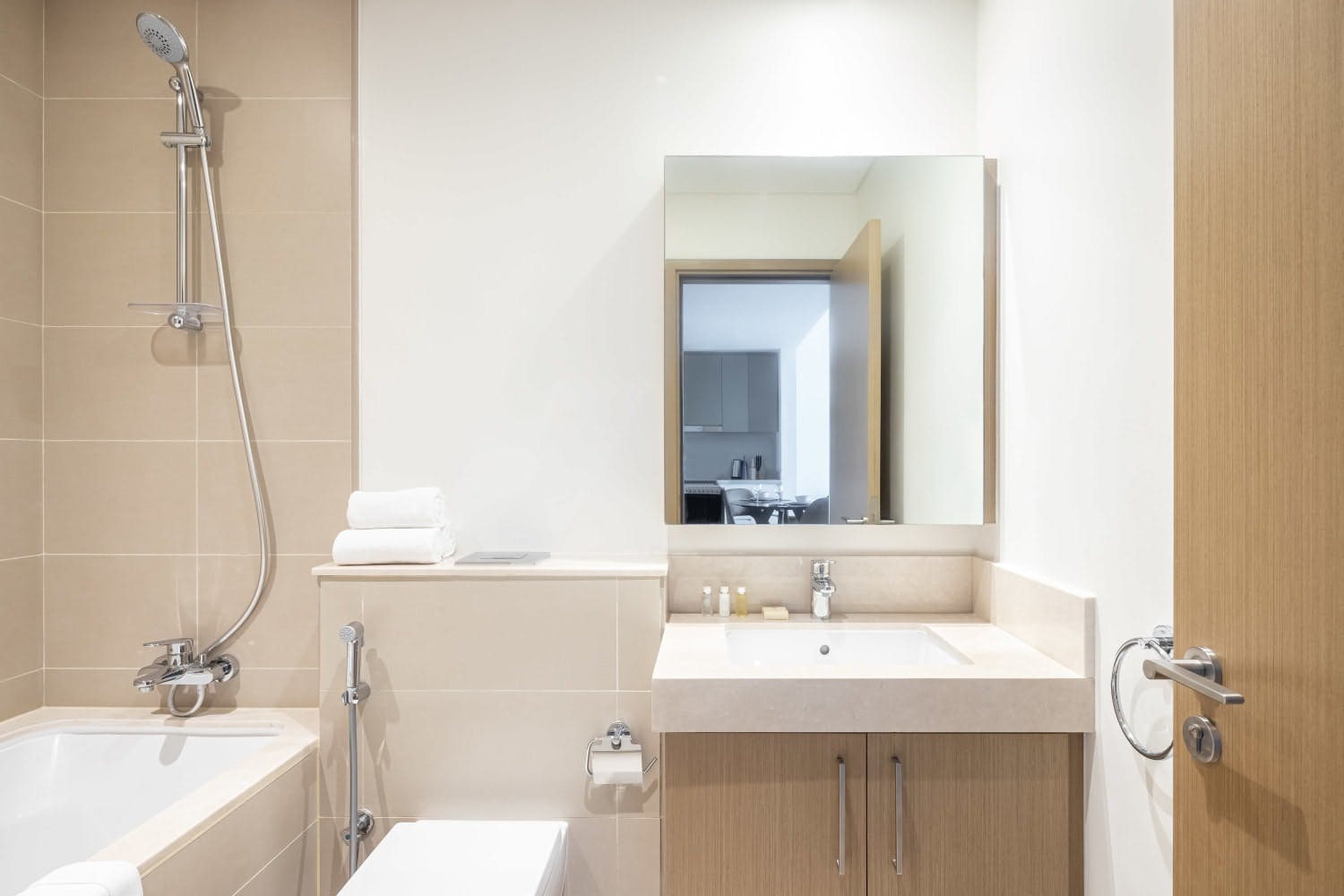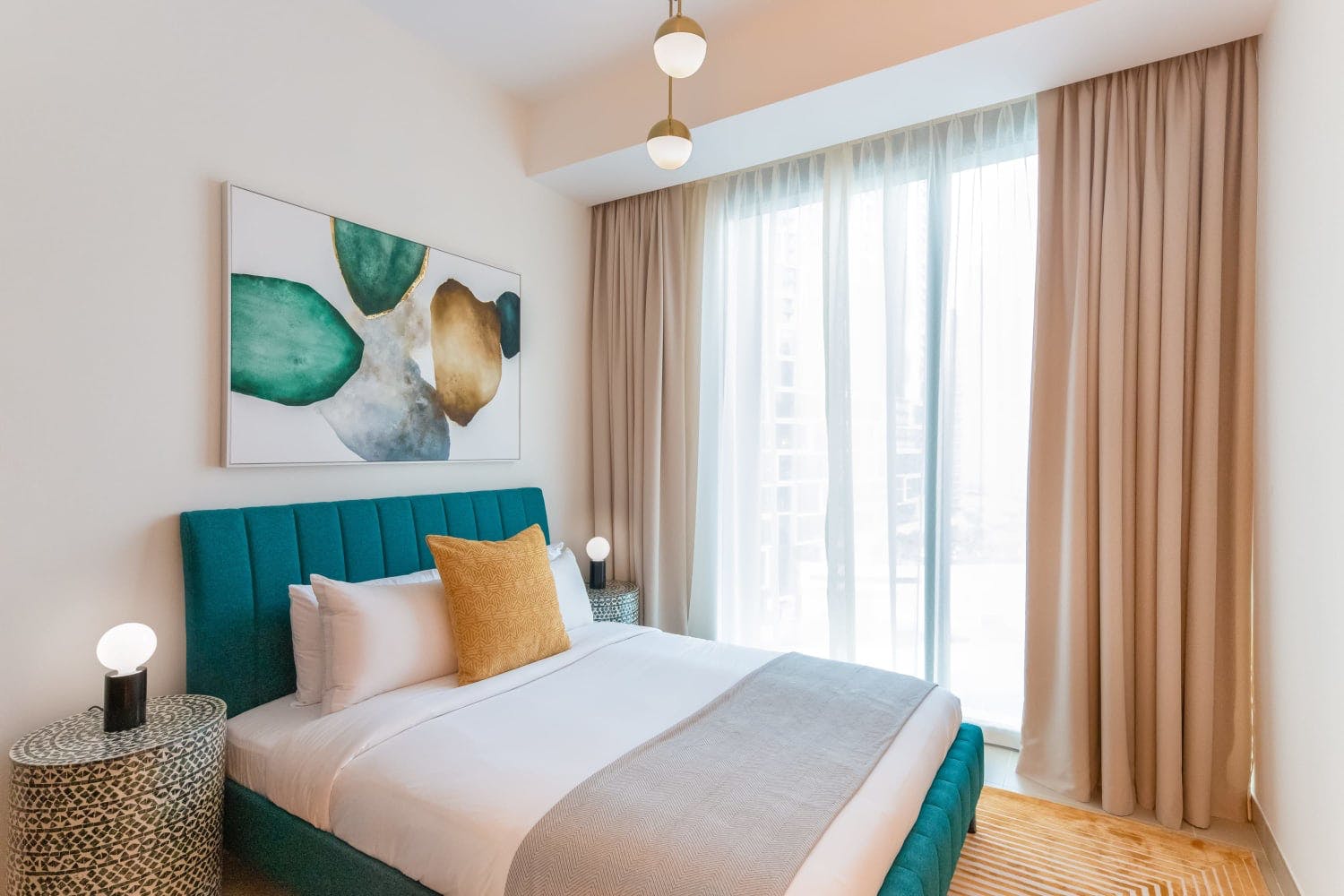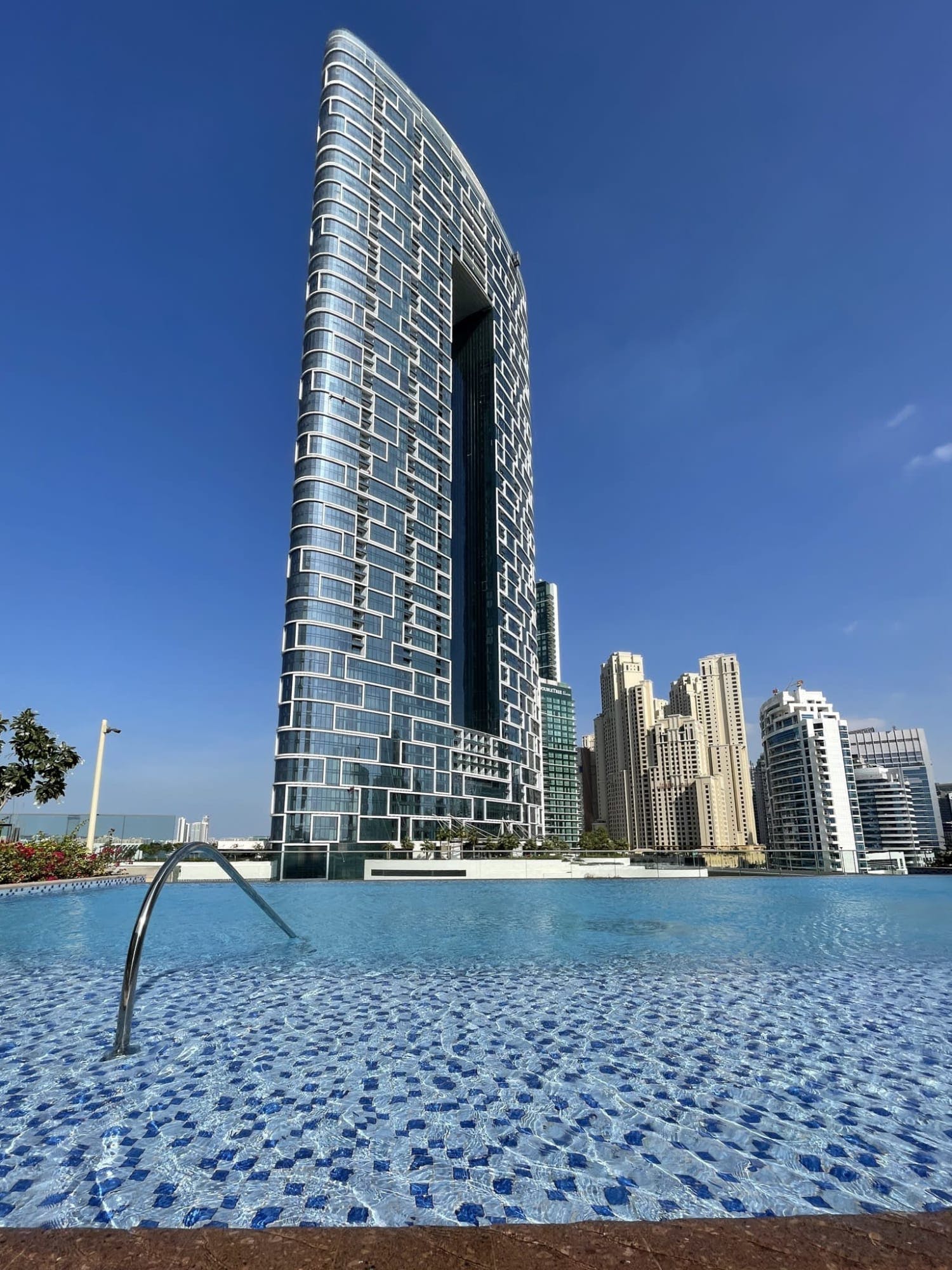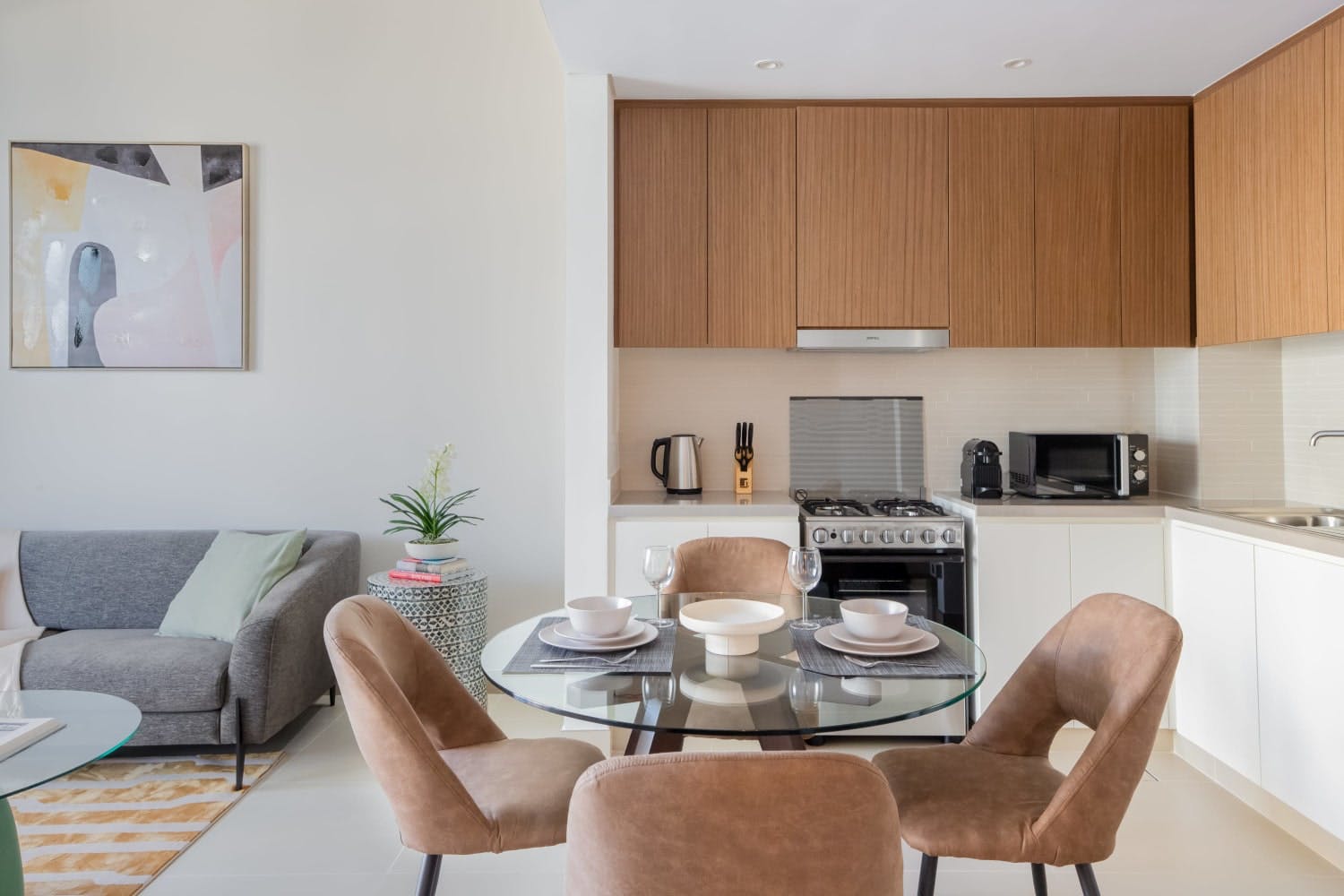Locations don't get much better than this. Dubai Marina is literally on your doorstep and JBR Beach is about fifteen minutes on foot. How's that for central? When you're not out and about, admire the sky-high scenery surrounding you from the private balcony or the communal swimming pool – both equally great options for laid-back afternoons in the desert sun. There's also a shared gym ideal for early-morning workouts, while business travellers can set up shop at the dining table when they need to check in with the office.